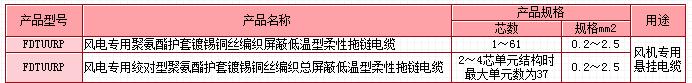 額定電壓300/500V及以下風(fēng)電專用低溫型柔性拖鏈電纜