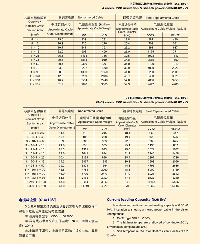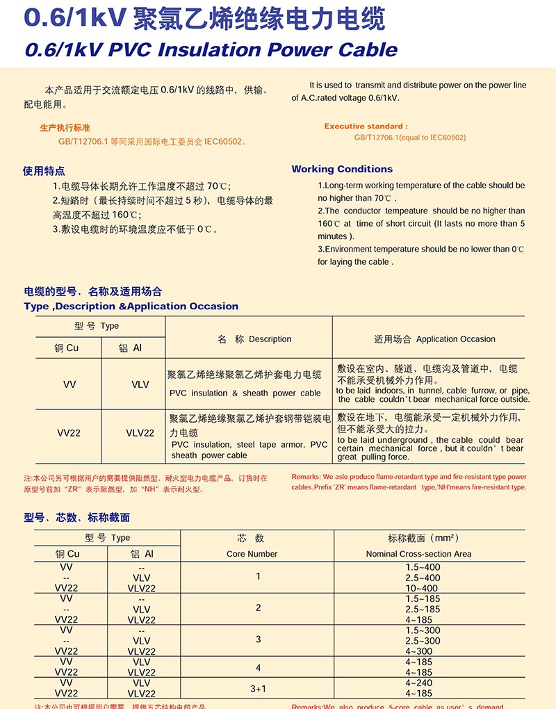 0.6/1KV聚氯乙烯絕緣電力電纜